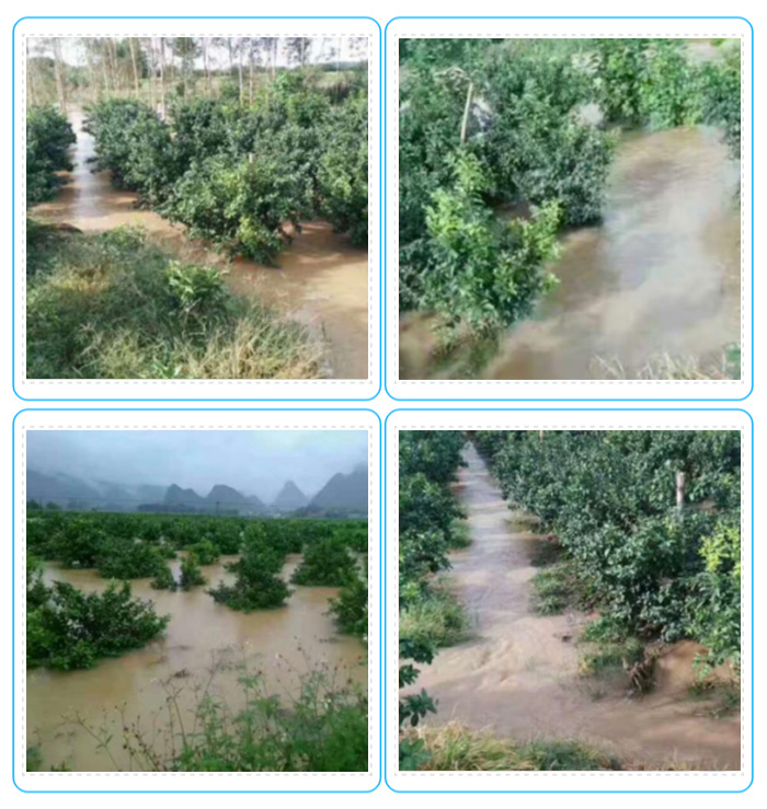 此外,经过涝害的柑橘果园,还容易诱发各种病虫害,同时土壤也遭受迫害,果农需及时进行灾后补救,杀菌杀虫,尽快恢复树势,提高果树抗逆性。