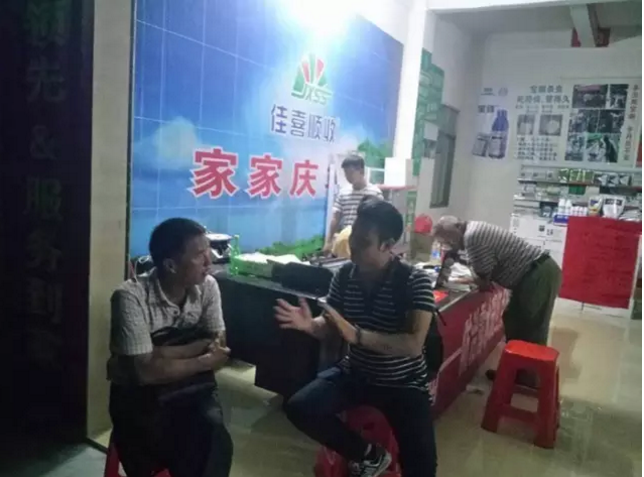晚上八点,400亩木瓜种植大户肖老板过来咨询采购产品,余经理亲自为农户做详细的讲解。