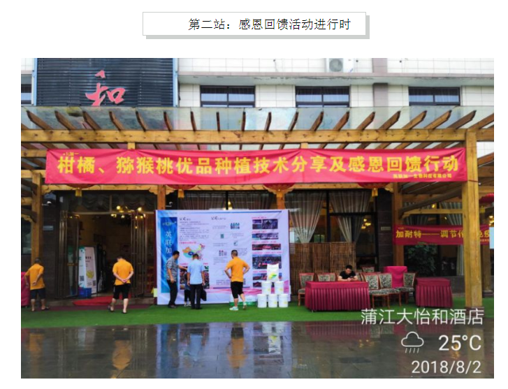 2018年8月2日,成都市蒲江县,早上暴雨骤降,乡间道路上排满长龙,出现了几百个撑着五颜六色雨伞的“观摩人”,深圳市英联加一携手蒲江县丰园农资举办的“柑橘、猕猴桃优品种植技术交流及感恩回馈行动”在众多果农朋友的期待中如期开展。