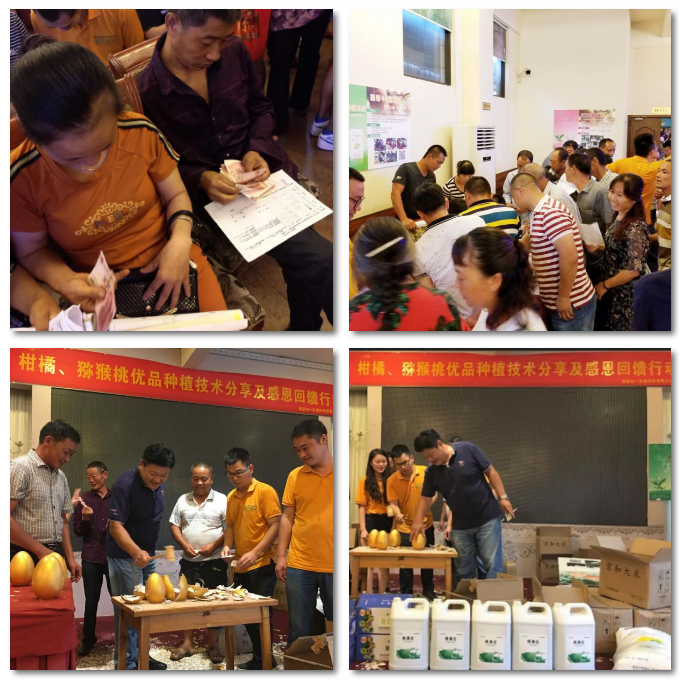 会议开始,丰园农资吴志伟老板为到场的果农朋友们进行了生动的宣讲。宣讲的主要内容围绕着柑橘和猕猴桃的优品果种植技术分享,另外吴总特地提醒:近段时间雨水较多,大家需重视连续降雨对柑橘和猕猴桃生长所产生的不良影响及应对措施,并分享了阴雨天气,有效保护树木的英联加一营养套餐(如果有读者感兴趣,想要来了解加一独家营养套餐秘籍,可致电英联加一全国服务热线:400-670-1101,我们用专业的态度,为您量身定制植物营养方案)。