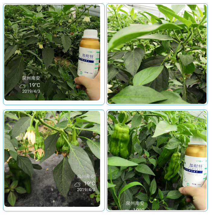 使用效果:辣椒花多,保果效果理想,并且在采摘的时候果实大小均匀,果皮靓丽有光泽,卖相好,畸形辣椒少。