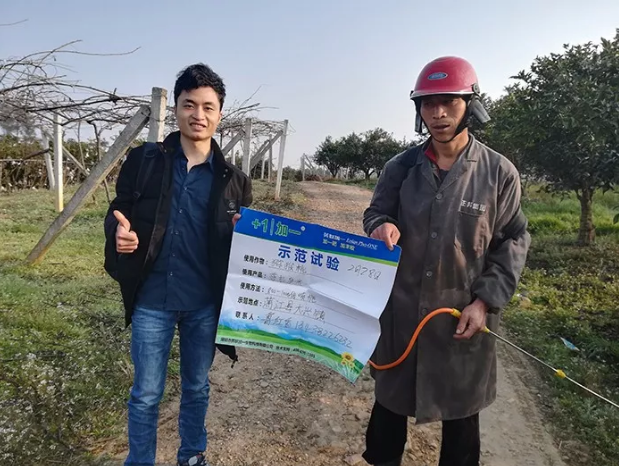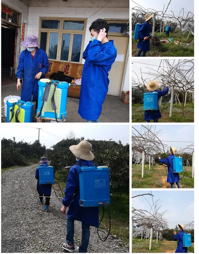 加一团队同事与种植户一起兑水,背上喷壶,前往基地,给猕猴桃喷药,期待普拉多米的神奇效果。