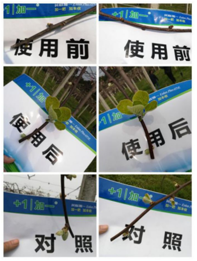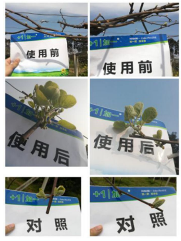 使用普拉多米之后,猕猴桃的芽苞发得很整齐,芽也比没有使用过的长得更快更整齐。