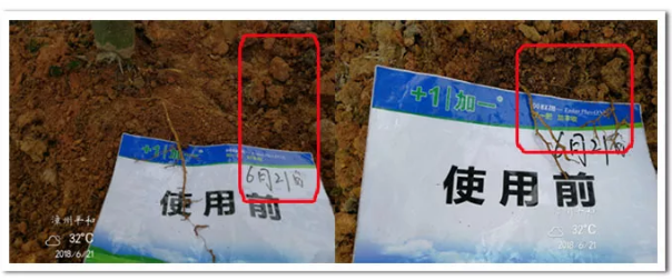 见此情况,加一团队一致决定要帮助林老板通过科学的手段改善这几棵树的现状,保留下树木。我们选择了其中一株弱树作为试验对象,挖开树木的土壤,发现蜜柚的根系不发达,而且须根少,我们当机立断的向李林老板推荐使用英联加一套餐:普拉多米+深海鱼油,做试验效果对比。