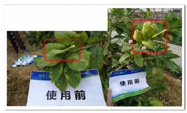 使用前:蜜柚叶片老化,有黄化现象