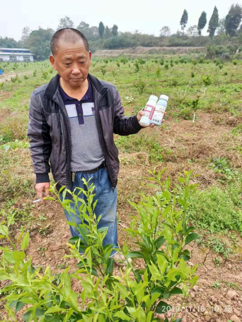 我们到谢先生果园查看后,根据柑橘果树症状初步判断:谢先生的柑橘树普遍存在营养缺失、树势弱的问题。我们推荐他使用了英联加一营养套餐:加耐特+翠美。