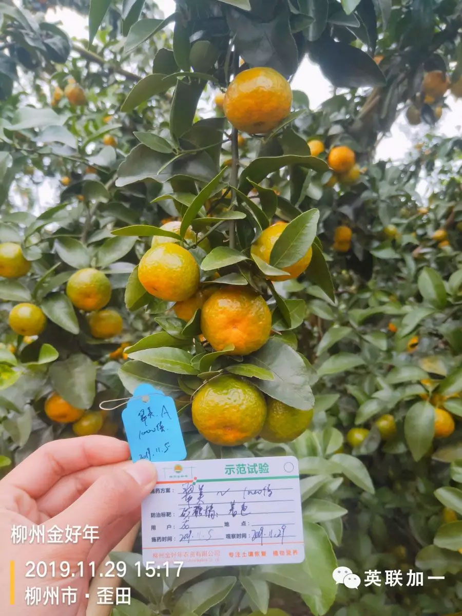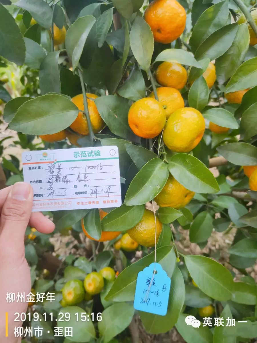 英联加一优秀合作伙伴广西柳州金好年农资今年就针对当地的柑橘着色管理,展开了一系列的推广宣传活动,希望将更多的专业管理技术及更好的产品带给基层农户,帮助农户种出好柑橘,卖出好价格。