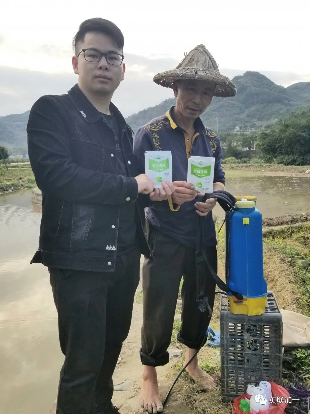 目前甘蔗已经采摘完毕,地里都是刚萌芽几天的甘蔗苗。农户熟练的先摇晃了几下普拉多米后,兑水倒进喷壶进行喷施。过程中我们简单的对农户进行了一个采访,农户说到:他从去年开始用英联加一普拉多米喷施到甘蔗上,到春节收成的时候平均一根甘蔗有7斤多重,没有使用的只有五六斤,普拉多米用在甘蔗上增产是很明显的!