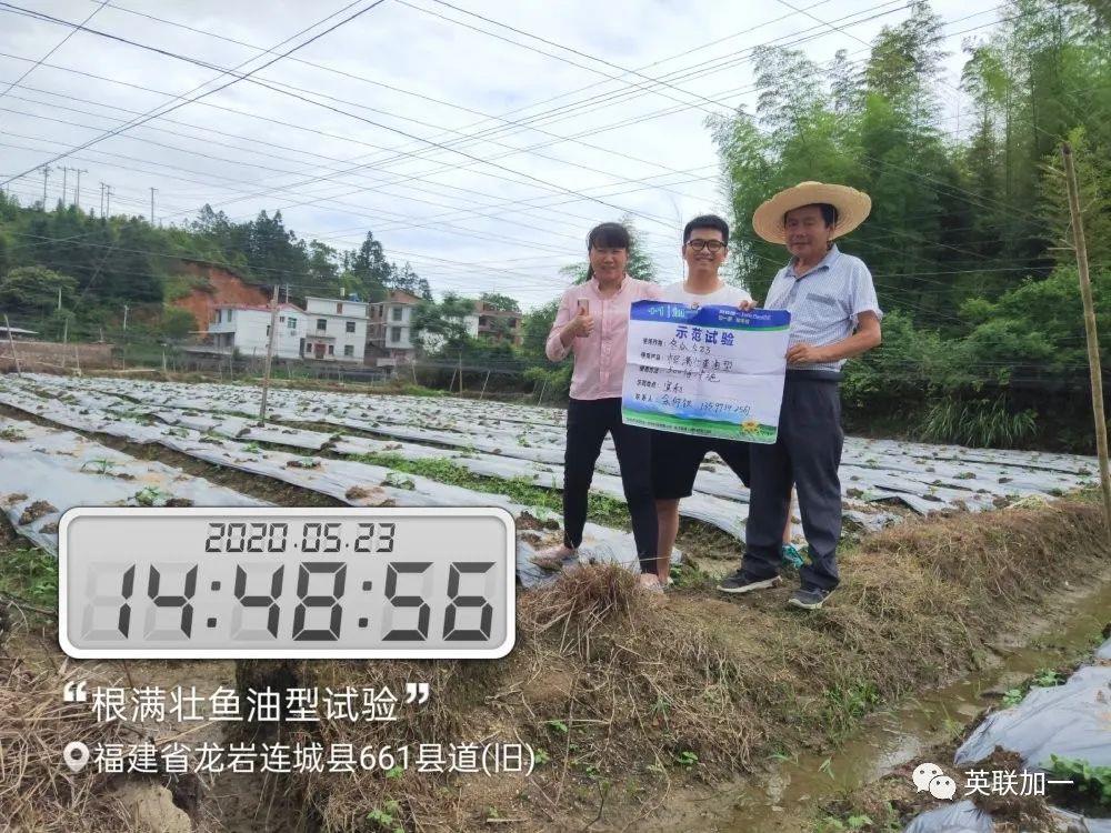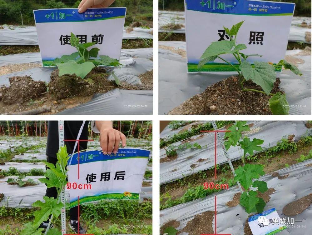 2020年5月23日,英联加一团队来到宣和乡余老板的冬瓜田实施“根满壮鱼油型提苗壮苗”实验。本次实验分别选取三组冬瓜苗,实验组按照500倍冲施使用根满壮鱼油型;对照组未使用根满壮鱼油型。