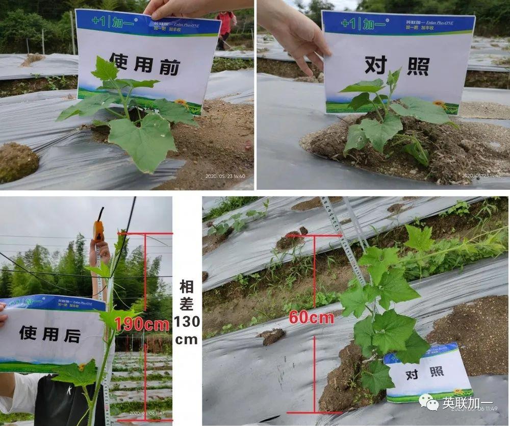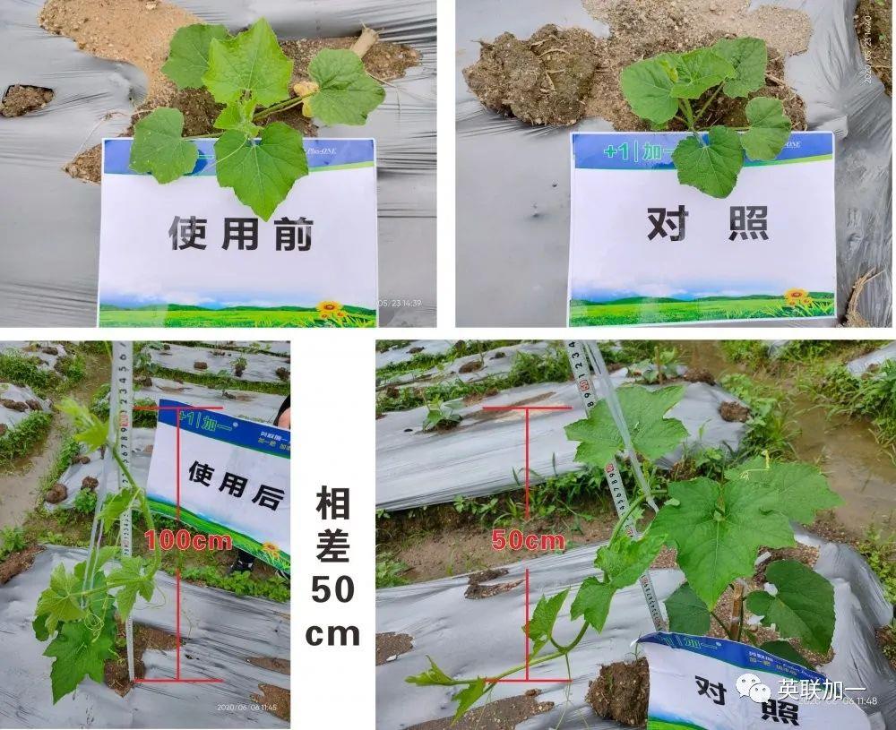 结论:使用根满壮鱼油型14天后,实验组瓜苗明显比对照组的高,生长速度更快,根茎更粗壮,叶片更厚实。