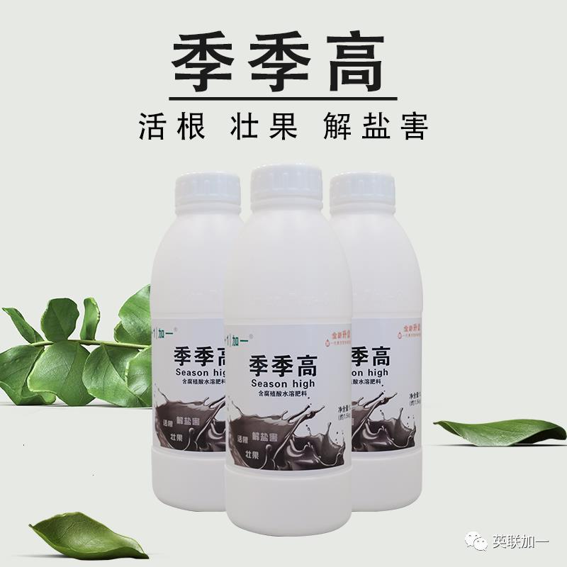 季季高是一款高养分、高纯度的产品,其中含有多种高效助剂,让作物吸收更快速。可刺激作物根系生长,促进细胞分裂,活根壮苗;提高作物抗旱、抗寒、抗病能力。