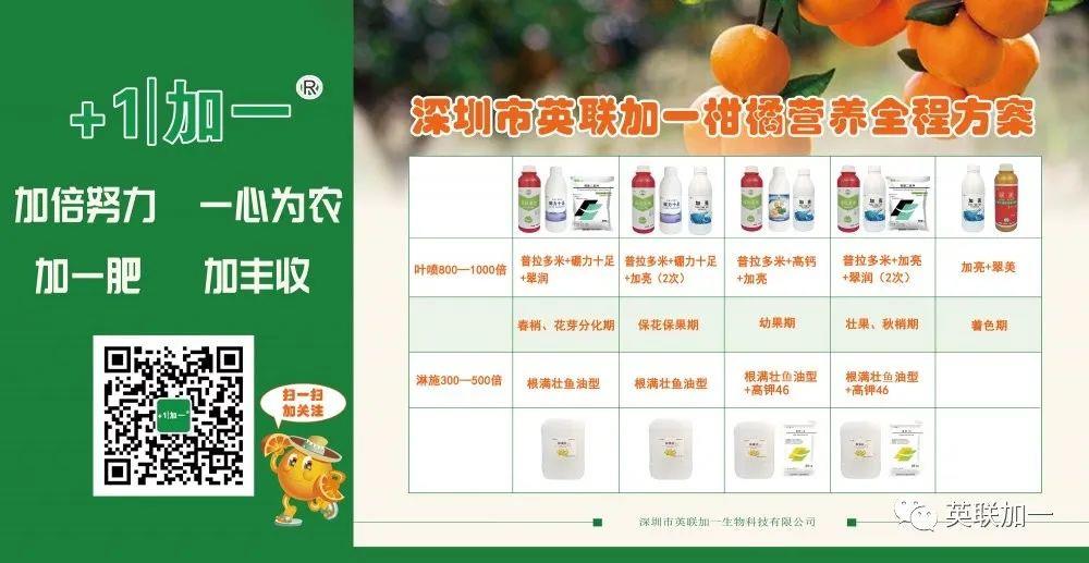 7-8月份是果实膨大期和秋梢期,这个时期需要确保秋梢的萌发和果实的膨大,所以对水肥管理要求较高。在夏梢修剪后,需要施一次有机肥和复合肥混合埋施,以促进秋梢萌发。追施水肥根满壮鱼油型+高钾46通用型。待秋梢萌发后,叶面喷施2次加耐特+加亮+硼力十足,促进果实膨大和秋梢老熟。