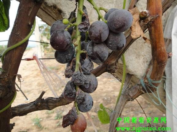 1.在有色品种上,病果粒色泽暗淡;