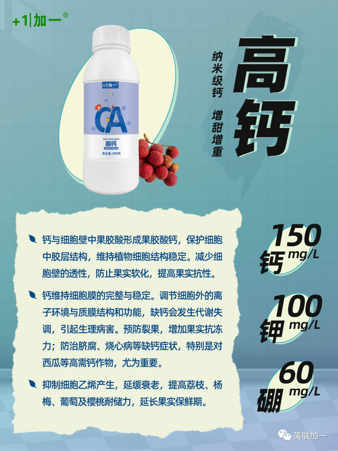 钙还能有效延迟采摘期和存储期:钙对果实成熟衰老的调控作用已有相关研究。许多试验表明,果实组织中维持较高的钙素水平,可以保持果实硬度,降低呼吸速率,抑制乙烯的生成,延长果实的贮藏寿命,提高果实的品质。