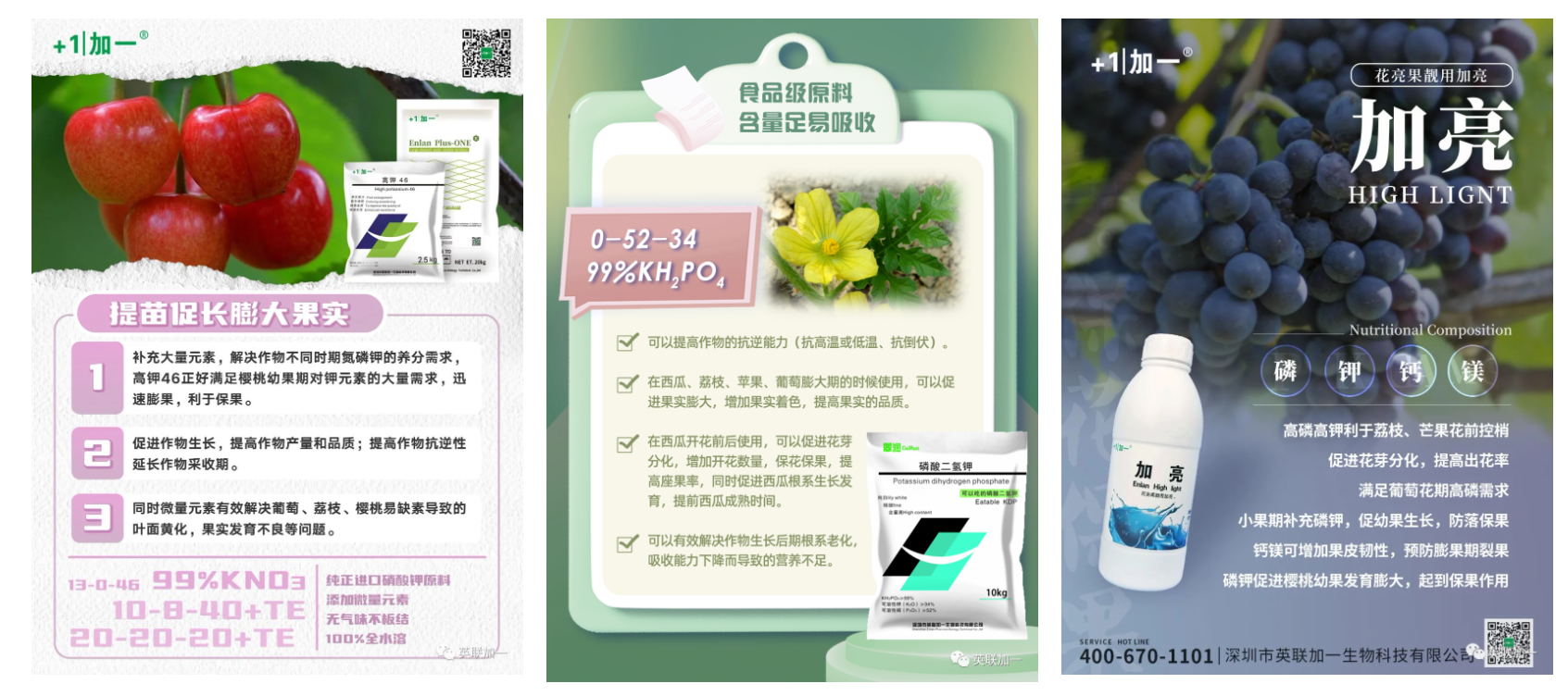 第四点:土壤干旱,磷不易被吸收,松疏的砂质土壤磷易被流失,均会诱发缺磷症 2、 施用平衡型大量元素水溶肥。 3、 施用磷酸二氢钾、高磷类叶面肥。 英联加一给柑橘补充磷元素的产品有: