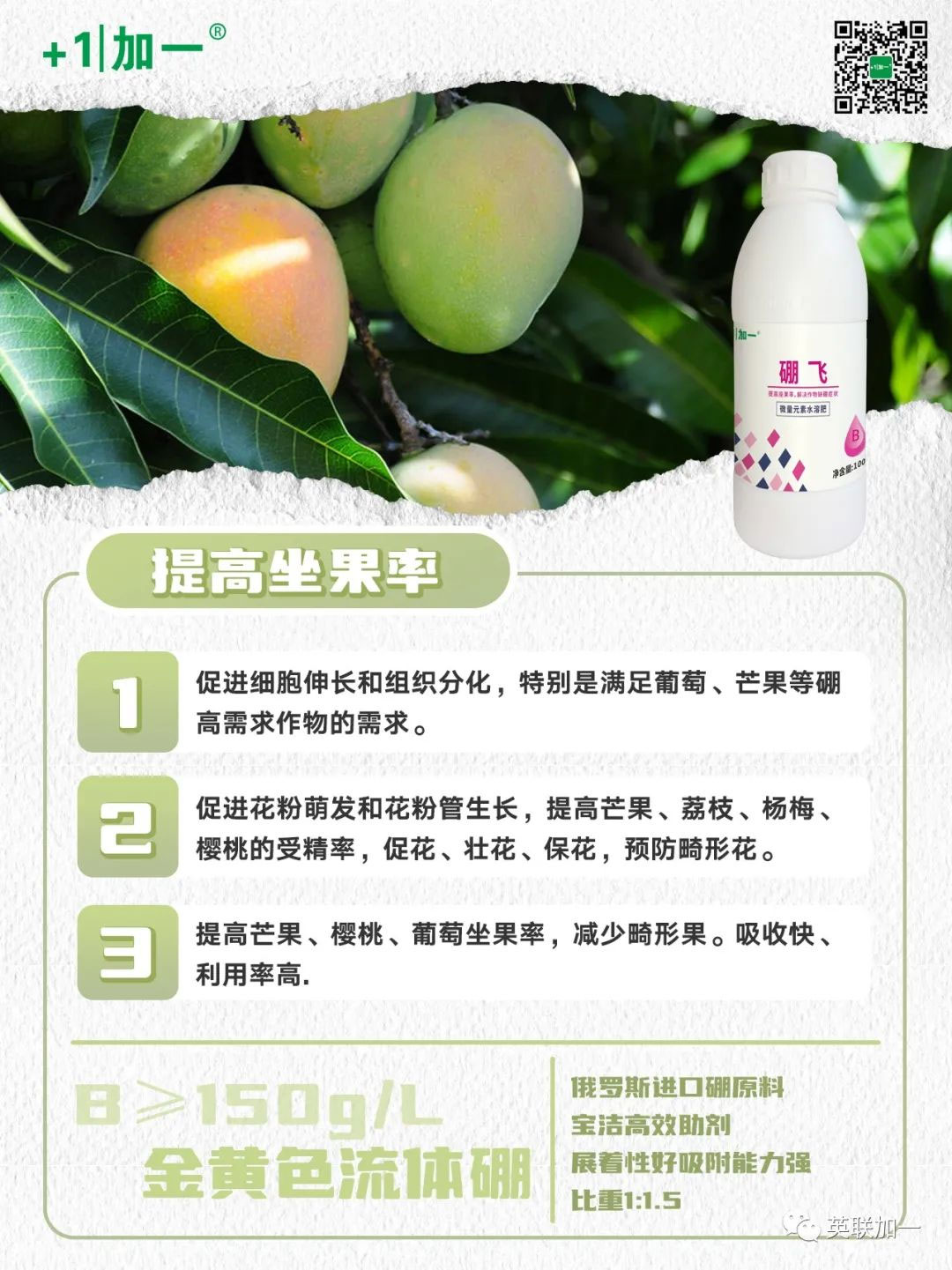 施硼肥的十大误区,你中了几个呢?接下来就跟我们了解一下吧! 硼对作物的生殖生长起到至关重要作用,所有作物需要硼只是需要量的大小不同。油菜、棉花、果树。蔬菜对硼需要量大,水稻、玉米、小麦对硼需要量少,但即使对硼需要量少的作物,缺硼症状也能严重影响产量,各种作物都应该及时补硼。 大量实验以证实,作物有对硼隐藏的需求。即使无缺硼症状,施用硼肥也能大幅度提高产量。 作物需要连续不断的供应硼,即使短时间中断硼的供应,作物产量和品质也会受到影响。 因此,施用硼肥应与叶面肥结合,叶面喷施,少量多次。 早期在农业生产中引进的硼肥是工业硼砂,只能基施,不能喷施(或喷施效果不好)。土壤基施与叶面喷施结合施用硼肥效果最好。 研究证实,花椰菜与架豆轮作时即使花对椰菜施用超过推荐剂量几倍以上,也不会对下茬架豆有影响。 作物缺硼会造成全部产量的损失,全部果实物市场的高端市场价值。在美国部分地区,农场主一旦发现作物缺硼就会将作物全部拔除。 硼对作物开花结果有不可替代的作用,N/P/K作用不能替代硼,平衡施肥理念应该是稳氮、减磷、增钾、补微(硼、硅、钙等),因此硼与氮、磷、钾同等重要。 硼镁肥俗称硼泥,其主要成分为硫酸镁,其中含不到0.2%左右的硼素,仅仅是生产硫酸镁而产生的下脚料,无法和高含量的流体硼相比。 硼作为作物开花结果最为重要的微量元素,绝大部分经济类、果树类、蔬菜类作物对其需求量较大,多种叶面肥中所含微量硼,不能满足作物对硼的需求。对于开花作物还是要单独补喷流体硼。 很多劣质/假冒硼肥,不按照国家要求标明纯硼含量,只含糊标出所谓产品纯度。即使100%纯度的垃圾、废料再纯还是垃圾、废料,购买产品时一定认清产品,标明有纯硼含量。