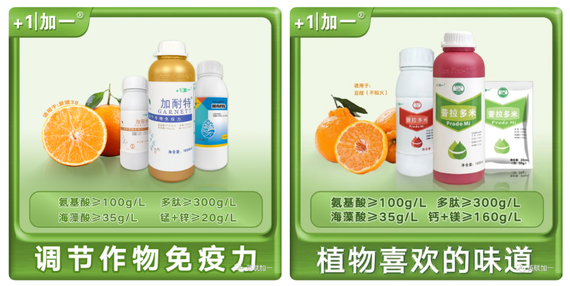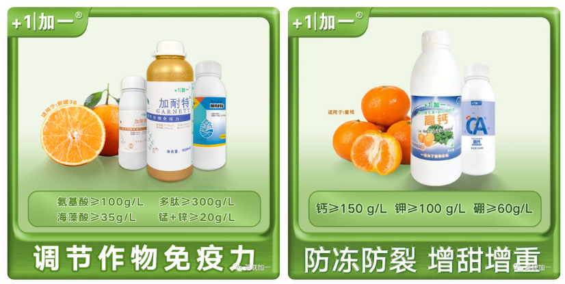 这个时候可以使用英联加一加耐特搭配高钙一起使用,在防日灼的同时补充钙元素,进行防裂。少量多次使用,可以让柑橘快速的吸收营养,树体长势好,叶片油绿厚实,果实圆润饱满,预防日灼果、落果和裂果,提高果实品质。