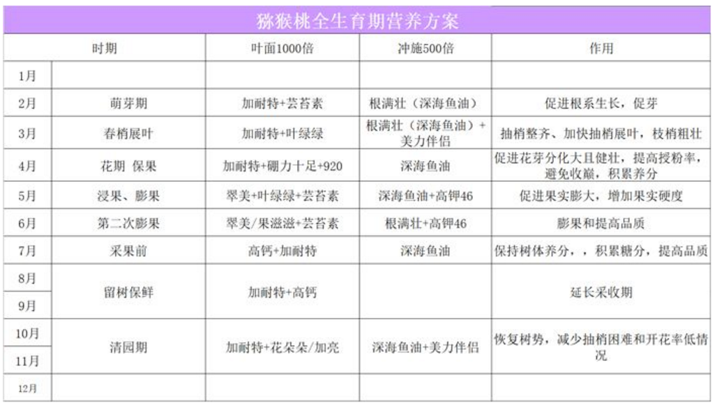 猕猴桃全生育期套餐: